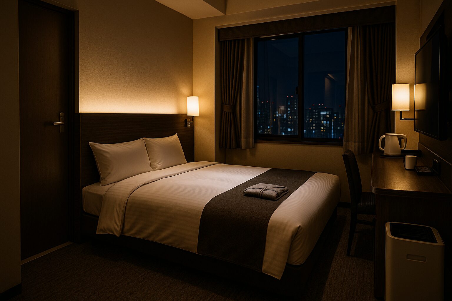 二人で1ベッドを選ぶ場合は、体格・寝返り・就寝時の室温まで想像して幅を選ぶのがコツ。ビジネスと観光を両立する滞在では、作業スペースや導線確保も評価軸に加えましょう。