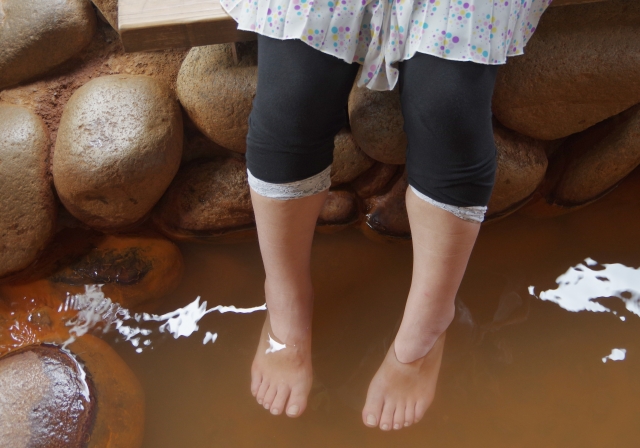 鉄分の多い透明なお湯が、酸素と出会うことで、だんだんと赤茶色のにごった色になっていきます。