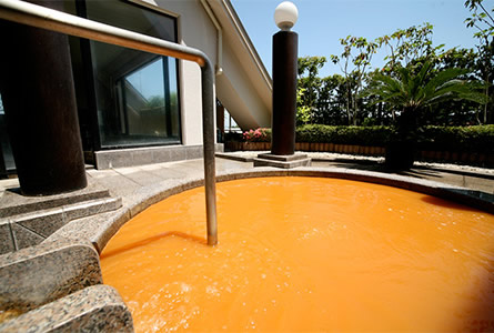 - 赤茶色の濃いお湯(塩分・鉄分を多く含む金泉)