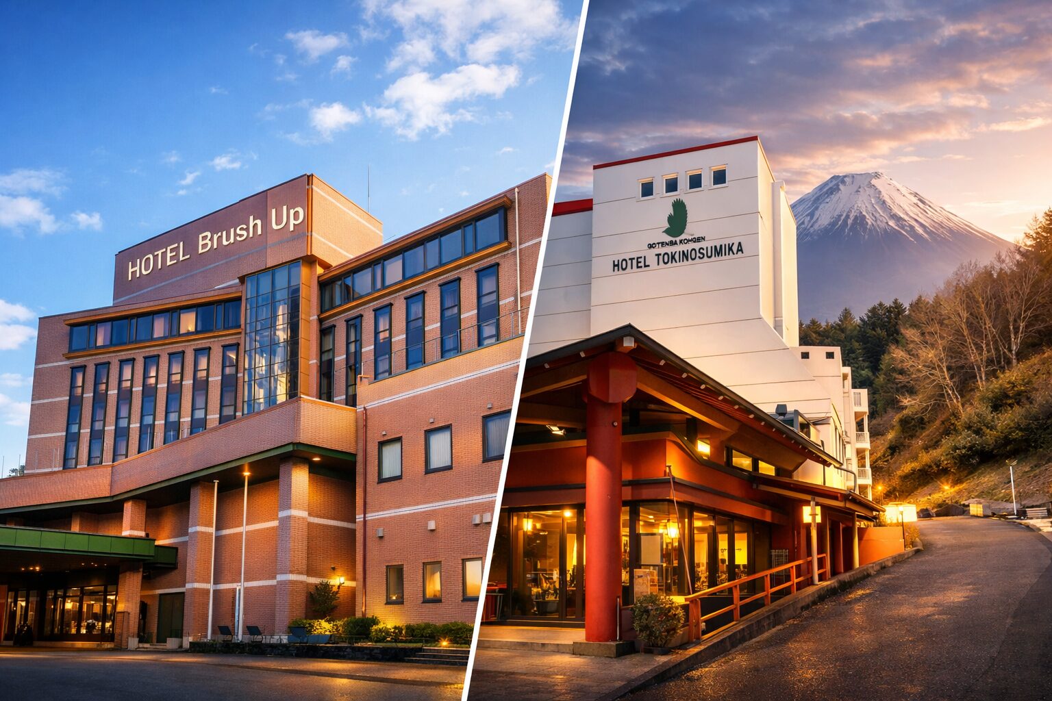 御殿場高原ホテルとホテル時之栖は、同じ「時之栖」敷地内にある“別の宿”です。名前が似ているので同じ建物に見えますが、場所・部屋タイプ・入浴スタイルが変わります。