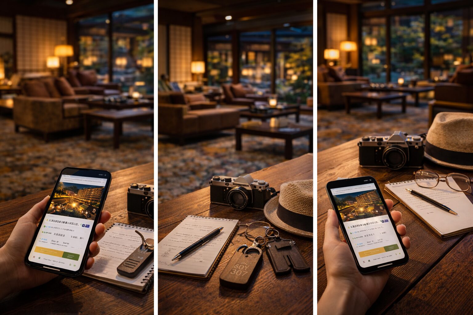 さらに、宿のプラン一覧も同じ日付で見て、内容(食事会場や部屋条件)が合っているか確認すると安心です。最後に、キャンセル条件も必ずチェック。少し安くても返金不可だと、予定変更で高くつくことがあるからです。