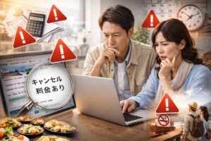 予約できたから条件も通ったとは限らないので、当日にあわてないよう、代表者だけでなく対象者の確認書類も用意しておくとスムーズです。年齢条件のある特典付きプランでは、見落としやすい大事なポイントです。