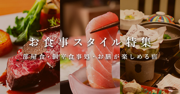 楽天トラベルには、部屋食、個室食事処、お膳スタイルなど、食事の形から宿を探せるページがあります。