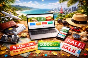 国内宿泊だけでなく、航空券+宿のプランなど“サービス別”にクーポンが出ることもあるので、公式特集で自分の予約方法に合うタブを選びます。高額クーポンほど先着枚数が少なく、配布期間内でも終了するため、見つけたら早めが安心です。