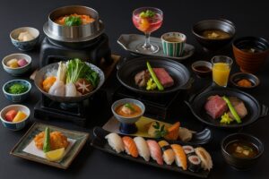 ざっくり分けると、花鳥=会席料理メインで少しずつ色々楽しむスタイル、風月=お肉とお寿司をしっかり楽しむスタイルというイメージです。公式や楽天、旅行会社の紹介をまとめると、次のような特徴があります。