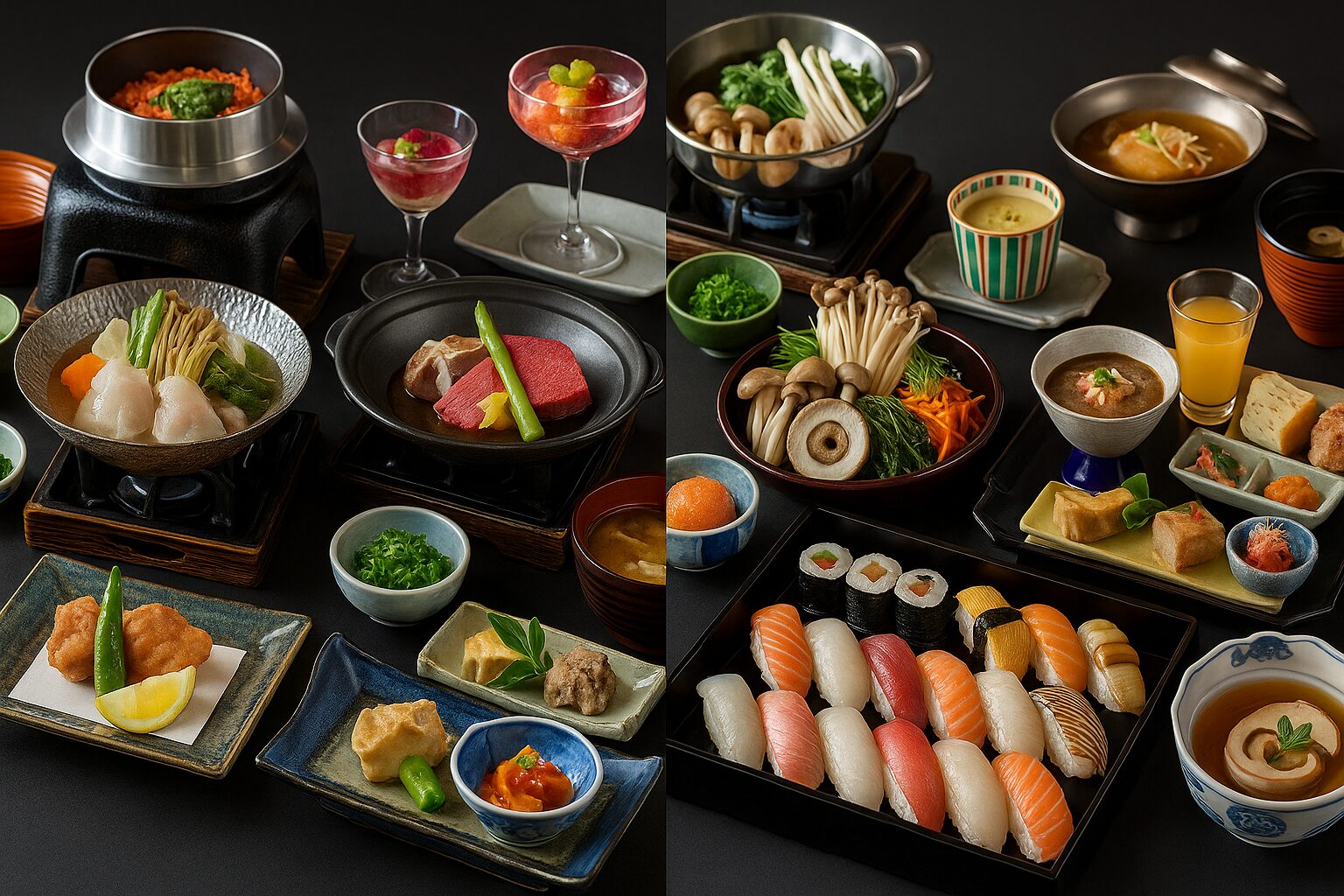 ざっくり分けると、花鳥=会席料理メインで少しずつ色々楽しむスタイル、風月=お肉とお寿司をしっかり楽しむスタイルというイメージです。公式や楽天、旅行会社の紹介をまとめると、次のような特徴があります。
