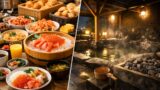 層雲峡の“ご飯が美味しい”と評判の宿は、大きくライブキッチン併設のビュッフェ型と、落ち着いて味わう会席・コース型に分かれます。