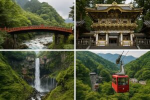 - 朝:東武日光駅着 → 世界遺産めぐりバスで日光東照宮・輪王寺・二荒山神社
